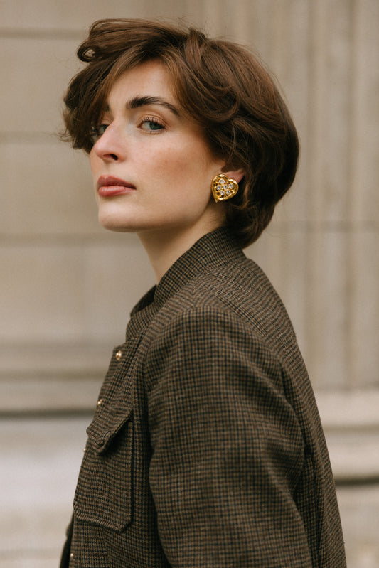 VINTAGE 1980S STATEMENT CRYSTAL HEART CLIP ON EARRINGS