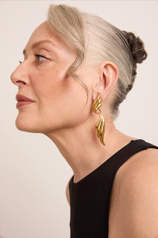 VINTAGE 1980S STATEMENT GOLD PLATED DUO WAVE DROP EARRINGS
