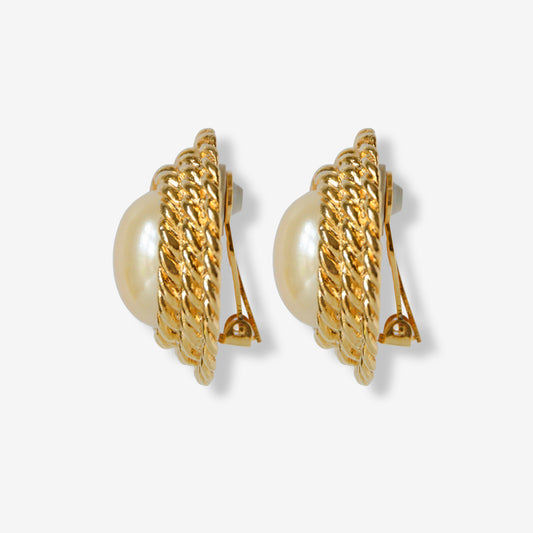 VINTAGE 1980S TWISTED ROPE IMITATION PEARL CLIP ON EARRINGS