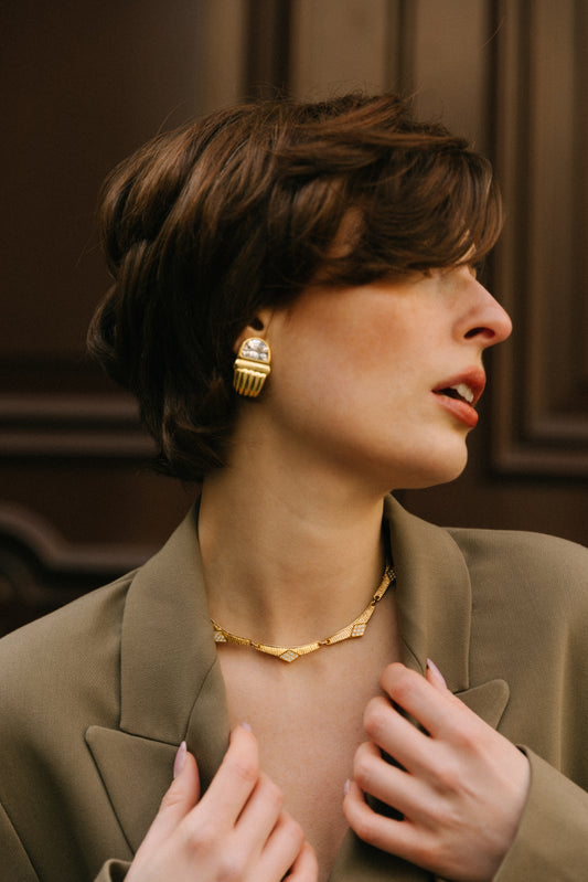 VINTAGE 1980S CRYSTAL GEOMETRIC DAINTY NECKLACE