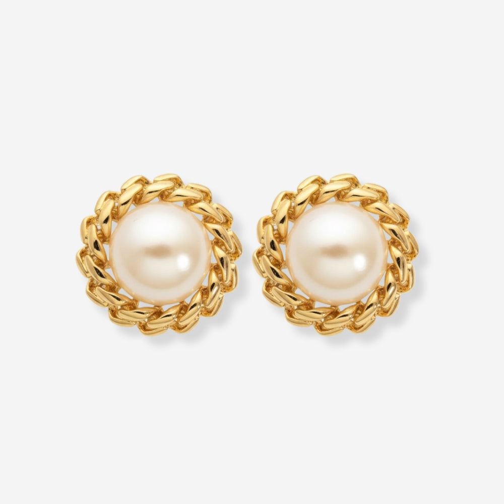 VINTAGE 1990s CURB CHAIN EDGE IMITATION PEARL STATEMENT EARRINGS